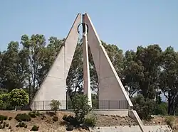 Standing 27 metres (89 ft) high, the monument consists of three 300 kg plumes of concrete,[1] representing the Spanish, French and British armies, crowned by a bronze laurel wreath.[2] The losses at the battle accounted for 7,268 dead French soldiers, 5,363 British and about 1,200 Spanish ones.[2] The names of the military units that took part in the battle are engraved on the stone.[3] It was funded by the Spanish Ministry of Public Works.[4]