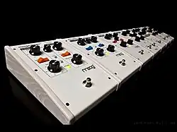 Moogerfooger is the trademark for a series of analog effects pedals manufactured by Moog Music. There are currently eight different pedals produced; however, one of these models is designed for processing control voltages rather than audio signal. A sixth model, the Analog Delay, was released in a limited edition of 1000 units and has become a collector's item. Moog Music announced on August 28, 2018, that the Moogerfooger, CP-251, Minifooger, Voyager synthesizers, and some other product lines were being built using the remaining parts on hand and discontinued thereafter.
