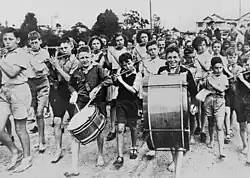 Moorooka State School Band welcoming home soldiers from World War II, circa 1945