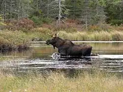 Moose were successfully introduced on Newfoundland in 1878 and 1904,[122] where they are now the dominant ungulate. However, they are not native to Newfoundland, and their negative impacts on flora and fauna, including endemic species, is well documented.[123][124] They have been somewhat less successfully on Anticosti Island in the Gulf of Saint Lawrence.
