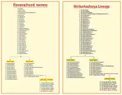 Dhyanswami Bapa, a followers of Nimbarka Sampradaya, entered Jeevant Samadhi (live burial) at Senjal Dham of Mahuva.[8] Dhyanswami Bapa's disciple, Jeevandas Bapa got married, and in his lineage Bapu was born.[8] Tribhuvandas Bapu's younger brother, Vishnu Devanand Giri, was the 6th Mahamandaleshwar of Kailash Ashram, Rishikesh, Haridwar, Uttarakhand (India).[7]