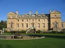 In the early 1900s, Charles Tuller Garland, son of the co-founder of the New York based National City Bank, decided to build a house in South Warwickshire countryside, with views over the River Avon valley. Designed by the fashionable society architect and decorator W. H. Romaine-Walker, it was inspired by Wilton House near Salisbury, and given a Palladian style. Built in 1906/7, designed for lavish entertaining, the Hall has sumptuous plasterwork, particularly in the barrel-vaulted great hall, library and dining room.[2] Romaine-Walker also landscaped the grounds, with a Wellingtonia-lined drive leading to the hall, its manicured blue garden, polo school and other equestrian facilities.[3] In 1913 Moreton Hall and the associated Morton Farm were purchased by Gilbert Player.[4] The hall was gutted by a major fire on 20 March 2008.[5]