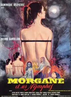 Girl Slaves of Morgana Le Fay (French: Morgane et ses nymphes) is a 1971 French film by Bruno Gantillon, an erotic horror tale involving Morgan le Fay and a castle full of women in the French countryside.[3] Morgan rules the island Avalon as if it were Lesbos[4] in a lesbian exploitative film praised by critics for its setup and characters,[5] and named a "neglected Eurotrash classic".[6]