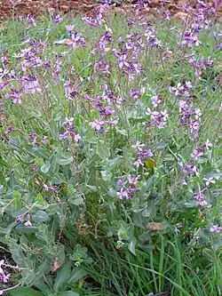 Moricandia arvensis, the purple mistress, is a species of flowering plant in the family Brassicaceae.[2] It has a broadly western Mediterranean distribution, from the Canary Islands to northern Africa including Mauritania and Chad, the Iberian Peninsula, Italy and as far as Greece, and has been introduced to France, Corsica, and Sardinia.[1] It has an intermediate C3–C4 carbon fixation system,[3] known as C2 photosynthesis.[4]