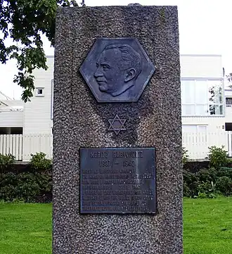 Rabinowitz was first detained in the regional jail at Lagård in Stavanger, was then sent to Møllergata 19 jail in Oslo on 26 February 1941 and then to Ånebyleiren concentration camp on 22 March, until he was sent back to Møllergata 19 on 25 April, where he remained until his deportation on the MS Monte Rosa 22 May 1941.[7] The Monte Rosa landed in Stettin, where he wrote his will. Rabinowitz ended up in Sachsenhausen, where he was placed in the barracks for Jews, though he was officially categorized as a political prisoner. He died on 27 February 1942. The death certificate lists pneumonia as the cause of death, but according to fellow prisoner, Rabinowitz was kicked and stomped to death outside Barrack 38 in Sachsenhausen.[2][8] Rabinowitz's brother, daughter, grandson, and son-in-law were all later deported and murdered in Auschwitz.[2]