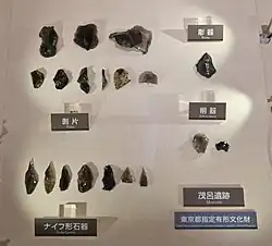 The stoneware consists of burins, side-scrapers, flakes and backed points. The archaeological site was designated as a historic site of Tokyo in 1969, and as a historic site of Itabashi Ward in 1984. The 22 excavated stone tools were also designated as tangible cultural properties of Tokyo in 1999.[1]