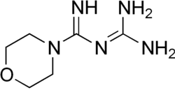 Moroxydine is an antiviral drug that was originally developed in the 1950s as an influenza treatment. It has potential applications against a number of RNA and DNA viruses.[1] Structurally moroxydine is a heterocyclic biguanidine.