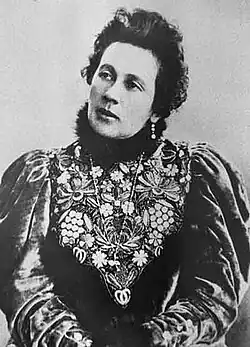 Some admirers of Mikhail Bulgakov's work believe that the heroine of the novel The Master and Margarita lived in Morozova's castle, but most literary scholars do not share this point of view.[5][33] Maxim Gorky described the house on Spiridonovka in his essay "Savva Morozov".[34]