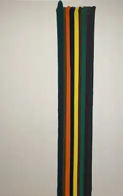 In the final stage of his career, Louis turned to a series of vertical Stripe paintings, produced from 1961 until his death in 1962. These works consist of regularly spaced, upright bands of pure color that span the height of the canvas. Each stripe was poured individually, using gravity and capillary action to guide the flow, resulting in remarkably crisp edges and consistent widths.[14]