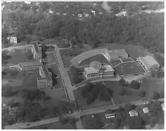 The 52-acre (210,000 m2) campus was perched on a hill in the middle of Morristown and surrounded by five distinct neighborhoods. Seven of the college's nine buildings were on the National Register of Historic Places. After operations ceased, most of the college buildings fell into disrepair, succumbing to vandalism and neglect. The campus was demolished to make way for a city park which opened in 2019.[3]