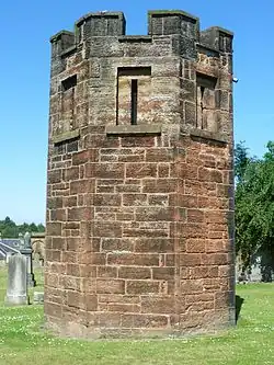 - Crail (NO613079) – dated 1826 with an inscription "ERECTED for securing the DEAD".[10] It is rectangular with ornamental battlements, ventilation slits, a substantial stone construction and a single solid door.[2][8]