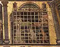 The last part of the interior to have mosaics added were the women's galleries between approximately 1300 and 1330.[1] These show angels and saints and their style agrees with Giovanni Villani's written evidence, which dates their completion to 1330 and probably dates the start of work to around 1300–1315. There are no art historical studies specifically on the mosaics of the women's galleries, though Venturi briefly notes that they were produced after 1300. The vault has a central motif of a starry sky, symbolic of the Empyrean, surrounded by angels with unclear attributes, possibly another set of angelic hierarchies.