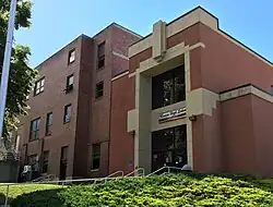 Less than three blocks east of Main Street on a moderate slope, its current compact campus opened 86 years ago in 1939, with wings added in 1968[10][11] and 1991. The previous high school of 1912 is across Third Street to the north; it was used as the junior high until 1959 and is now the "1912 Center."[12][13] The original high school of 1892 was on the site of the present north wing; it was later Whitworth grade school and was razed in 1939.[14][15][16]