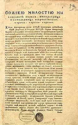 Ivan Shuvalov and Mikhail Lomonosov promoted the idea of a university in Moscow, and Russian Empress Elizabeth decreed its establishment on 23 January [O.S. 12 January] 1755.[4]