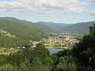 The Moselotte rises in the massif des Vosges at the fontaine de la Duchesse, near the summit of Hohneck. It flows into the Moselle at Remiremont. Its length is 47.3 kilometres (29.4 mi),[1] while its watershed is 356 square kilometres (137 sq mi).