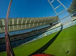 It was one of the host stadiums for the 2010 FIFA World Cup. The stadium has a capacity of 55,500 (expandable up to 75,000).[2] The stadium is adjacent to the Kings Park Stadium, in the Kings Park Sporting Precinct, and the Durban street circuit used for the A1GP World Cup of Motorsport. It includes a sports institute, and a transmodal transport station.[3]