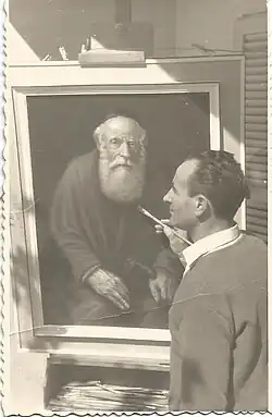 He returned to Poland after the war and began his long and fruitful career as an artist, sculptor, and art teacher. His first set of oil paintings and sketches, shown in various exhibitions throughout Poland between the period 1945–1950, depicted the horrors he experienced during the war. Bromberg (who changed his name to Moshe Bar-Am) continued his artwork after immigrating to Israel in the summer of 1950 with his wife, son, and daughter. After getting encouragement from the first President of Israel (Itzhak Ben-Zvi), he started working on a unique set of twenty miniature paintings in gouache, showing various biblical subjects. He exhibited his paintings in numerous solo and group exhibitions in Israel (mostly in Ramat-Gan), often addressed by VIPs such as Abba Eban and Menachem Begin. He was awarded artistic merits and distinction and had his art work displayed in various galleries and museums (besides Poland). Later on, his mostly oil paintings, on subjects ranging from Jewish Rabbis portraits, Partisans fighting, Israeli scenery, and still life were also exhibited in Canada.