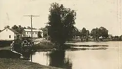 In 1899, the Omega Portland Cement Company began operating in Mosherville along Cobb Lake, which is located just southeast of the community.[14] The numerous small lakes in the area were rich in sediments necessary to produce Portland cement, and the company built several buildings in Mosherville. The sediments were dredged from the nearby lakes and transported to Millbury, Ohio for further processing. This company ceased operation in 1914.[15][16]