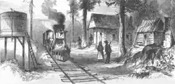 Moss Neck is located in west-central Robeson County.[1] The name was coined by Native Americans to refer to a stream in the area, and it was later applied to the community after it was settled.[2] It began as a center for turpentine distillation, though as local pine forests were depleted the industry moved south. The community remained due to the presence of a post office and a cooperage.[3] In January 1861, the Wilmington, Charlotte and Rutherford Railroad built a line through the village.[4] A railway station was established, leading to a revitalization of the local community, and it became a center of Lumbee activity.[5] It was frequented by members of the Lowry Gang during the Lowry War.[6] In 1892, the Wilmington and Weldon Railroad proposed building a north-south line through Moss Neck, but at the opposition of a prominent citizen the line was moved a few miles west to Campbell's Mill, which shortly thereafter became Pembroke.[7] By 1909, in addition to the railway station, the community hosted several homes, two turpentine distilleries, a water mill, a sawmill, a hotel, a post office, a school, and a Methodist church. Over the following decades, the community declined as the turpentine industry moved southward and naval stores were supplanted by steel in shipbuilding.[8] The station at Moss Neck was eventually closed,[9] and other business migrated to Pembroke. In the 1920s the Methodist church was disassembled and rebuilt in Pembroke. By 1949, the town was largely deserted.[8]
