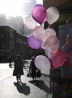 The American version of Mother's Day has been criticized for having become too commercialized.[9][10] Jarvis herself, who began the celebration as a liturgical observance, regretted this commercialism and expressed that this was never her intention.[1][11] In response, Constance Adelaide Smith successfully advocated for Mothering Sunday as a commemoration of a broader definition of motherhood in many other parts of the English-speaking world.[12]