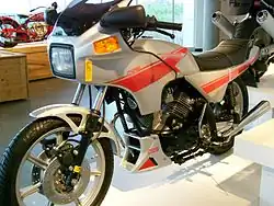In 1973, Moto Morini launched its first 72-degree V-twin engined motorcycles, designed by Franco Lambertini, and created by Franco and Gino Marchesini.[9] The 350 Sport and Strada models displaced 344 cc and were complemented in 1977 by 500 cc Sport and Strada models. Equipment on the models was of high specification, and when released the Morini 3½ was around the same price as a Honda CB750.