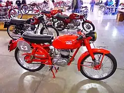 Parilla was an Italian motorcycle manufacturing company. It was founded in 1946 by Giovanni Parrilla, who dropped an 'R' in his name for the company title. He began by designing, building and racing a 248cc single cylinder, ohc motorcycle, which he modified to take a dohc.[1] After this, he produced a variety of road bikes with; 98cc, 125cc and 250cc engines. In 1952 motorcycle designer Soncini was appointed and improved the range of motorcycles available. In the early 60s Parrilla experimented with a 125cc rotary-valve two-stroke attached to a 5-speed gearbox, but this project was abandoned and the company folded in 1967.[2]