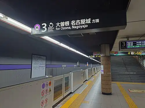 ![]() Meijō Line platform, 1 April 2023 | ||||||||||||||||