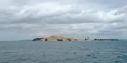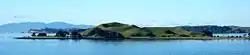Motukorea or Browns Island is a small New Zealand island, in the Hauraki Gulf north of Musick Point, and one of the best preserved volcanoes in the Auckland volcanic field. The age of eruption is about 25,000 years ago, when the Tāmaki Estuary and the Waitemata Harbour were forested river valleys.[3] Due to centuries of cultivation, little native bush remains except on the north-eastern cliffs, leaving the volcanic landforms easily visible. It exhibits the landforms from three styles of eruption. The island consists of one main scoria cone with a deep crater, a small remnant arc of the tuff ring forming the cliffs in the northeast, and the upper portions of lava flows. The area was dry land when the eruptions occurred, but much of the lava is now submerged beneath the sea. 36°49′50″S 174°53′41″E / 36.8306°S 174.8948°E