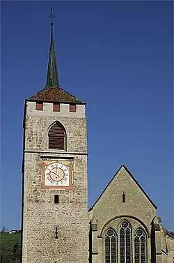 From the 2000 census, 1,477 or 33.8% were Roman Catholic, while 1,471 or 33.7% belonged to the Swiss Reformed Church. Of the rest of the population, there were 21 members of an Orthodox church (or about 0.48% of the population), there were 7 individuals (or about 0.16% of the population) who belonged to the Christian Catholic Church, and there were 82 individuals (or about 1.88% of the population) who belonged to another Christian church. There were 3 individuals (or about 0.07% of the population) who were Jewish, and 506 (or about 11.58% of the population) who were Islamic. There were 5 individuals who were Buddhist, 8 individuals who were Hindu and 24 individuals who belonged to another church. 428 (or about 9.79% of the population) belonged to no church, are agnostic or atheist, and 339 individuals (or about 7.76% of the population) did not answer the question.[12]