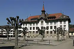 In the 2009/2010 school year there were a total of 665 students in the Moudon school district. In the Vaud cantonal school system, two years of non-obligatory pre-school are provided by the political districts.[21] During the school year, the political district provided pre-school care for a total of 155 children of which 83 children (53.5%) received subsidized pre-school care. The canton's primary school program requires students to attend for four years. There were 347 students in the municipal primary school program. The obligatory lower secondary school program lasts for six years and there were 269 students in those schools. There were also 49 students who were home schooled or attended another non-traditional school.[22]