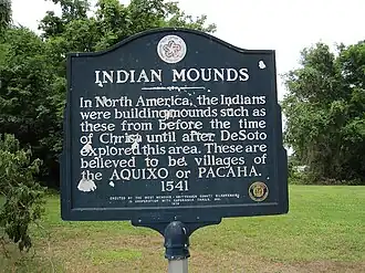 The community was named to honor the numerous prehistoric Native American earthen mounds which are found in the surrounding area. The mounds have not been thoroughly investigated and are threatened by the expansion of the city of West Memphis, Arkansas. The mounds may be a manifestation of the Marksville culture dating between 500 BCE and 500 CE.[2]