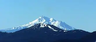 Mount Ashland is the highest peak in the Siskiyou Mountains of southern Oregon.[2] It was named for the city of Ashland, located 8.6 miles (14 km) north of the mountain. The Siskiyou Mountains are a subrange of the Klamath Mountains in northwestern California and southwestern Oregon. The mountain is part of the Rogue River–Siskiyou National Forest, which encompasses most of the Siskiyou Mountains. The Oregon–California border is 5 miles (8 km) south of the mountain.