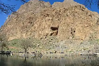 Mount Bisotoun, aka Bīsitūn (referring to the mountain and the nearby village), is a mountain with a rock precipice in the Zagros Mountains in Kermanshah, Iran. Darius I inscribed the flat rock face in three languages c. 500 BC, known as the Behistun Inscription.[1]