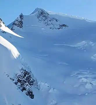 Mount Benvolio is a 2,613-metre (8,573-foot) glacier-clad peak located in the Garibaldi Ranges of the Coast Mountains, in Garibaldi Provincial Park of southwestern British Columbia, Canada. It is the second-highest point of the Fitzsimmons Range, which is a subset of the Garibaldi Ranges.[3] It is situated 15 km (9 mi) southeast of Whistler, and its nearest higher peak is Overlord Mountain, 0.7 km (0 mi) to the northwest.[3] The Benvolio Glacier is set on the western slope of the peak, the Diavolo Glacier spreads out below the eastern aspect of the summit, and the Fitzsimmons Glacier descends the north slope. Precipitation runoff from the peak and meltwater from its glaciers drains into tributaries of the Cheakamus River.