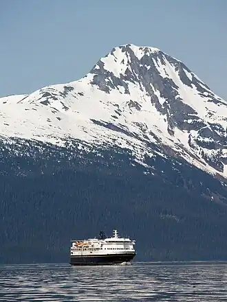 Mount Golub is a prominent 4,194 ft (1,280 m) mountain summit located in the Chilkat Range of the Saint Elias Mountains, in the U.S. state of Alaska. This peak is situated 29 miles (47 km) northwest of Juneau, and 2 mi (3 km) west of Lynn Canal, on land managed by Tongass National Forest. Although modest in elevation, relief is significant since Mount Golub rises above tidewater in less than two miles. The mountain's name was officially adopted in 1972 by the U.S. Board on Geographic Names to commemorate Harvey Golub (1930–1971), member of the 1968 first ascent party.[4] Other members of the party were Richard Folta, Delbert Carnes, and Keith Hart.[4] Hart submitted the name for consideration following the September 4, 1971, untimely death of Harvey Golub who perished in the Alaska Airlines Flight 1866 disaster.[4] That flight, which took all 111 lives aboard, crashed in a canyon approximately seven miles south of his namesake mountain.