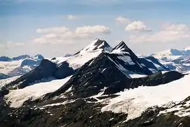 Mount Goodall is a mountain in east-central British Columbia, Canada, located near the headwaters of the Clearwater River. Situated in the Cariboo Mountains of the Columbia Mountains, it is the second highest mountain in Wells Gray Provincial Park with an elevation of 2,930 m (9,613 ft). Mount Goodall has 11 distinct summits and extends nearly 8 km (5.0 mi) in a northwest to southeast direction. On the northeast side, an unbreached wall of rock and ice rises between 400 m (1,312 ft) and 1,300 m (4,265 ft) from the Goodall Glacier.[1]