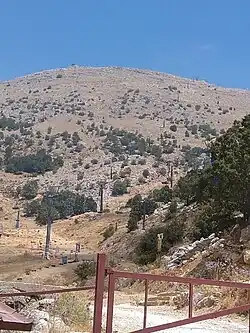 The Mount Hermon ski resort (Hebrew: אתר החרמון) is situated on the south-eastern slopes of Mount Hermon, a few kilometers off the Purple line, in the Israeli-occupied Golan Heights. The site is surrounded by the Hermon nature reserve. While the nature reserve is open year-round, the ski resort is open only at the peak of winter (usually January–March), when enough snow is accumulated on its ground.[2] It has a top elevation of 2,040 metres (6,690 ft), going down to 1600 metres, with an area covering about 2,434 dunams (243.4 hectares).[3]