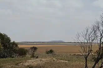 ![]() Mount Hill, showing its bluff northern face, as viewed looking in a westerly direction from Lincoln Highway near Port Neill, at a range of about 20 km. | |