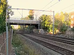 The Boston and Providence Railroad opened through West Roxbury (now part of Boston) in 1834. Monterey station was open by 1849.[2]: 154 It was renamed Mount Hope around 1857.[3][4] A small station building was built on the west side of the tracks just south of Blakemore Street in 1869.[5][6][7]