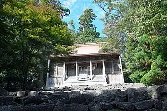 At present, there is a Shinto shrine at the summit, reached by a climb of 850 stone steps, and a museum and campsite at the foot of the mountain.[2]
