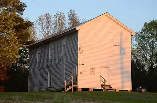 The Mount Moriah Masonic Lodge No. 18 is a historic building in Lisbon, Arkansas, US. The two-story wood frame lodge building was built in 1858, and is virtually unaltered. It has several distinctive construction features, including 12" by 12" timber posts that rise the full two stories at its corners; this feature is believed to be unique in the state. It was built as a meeting hall a local chapter of Freemasons, and is the oldest purpose-built Masonic hall still used for that purpose in Arkansas.[2]