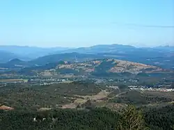Mount Pisgah is a small mountain (summit) in Lane County, Oregon, United States, rising 1,060 feet (320 m) above the surrounding Willamette Valley to a maximum elevation of 1,531 feet (467 m). It was named after the biblical Mount Pisgah. It is situated between the Coast Fork and Middle Fork of the Willamette River, two miles (3.2 km) southeast of their confluence. Springfield is immediately north of Mount Pisgah, and the city of Eugene is about seven miles (11 km) west. It is the site of the 2,363 acres (956 ha) Howard Buford Recreation Area as well as the non-profit Mount Pisgah Arboretum at its base.
