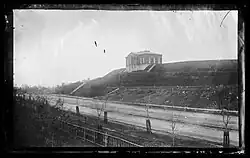 Until the 19th century, the site had sweeping views of Manhattan, Brooklyn, and parts of New Jersey and Staten Island to the west, the Atlantic Ocean to the south, and Long Island to the east. Mount Prospect Park was named for these views.[1][2] Peak elevation is 200 feet (61 m) above sea level.[3][4] It was a lookout point for Continental Army troops defending the Heights of Guan in 1776. The Battle of Long Island (sometimes called Battle of Brooklyn) was fought nearby.[1] Mount Prospect Park is designated by the NYC Department of Parks as a site of historical significance and is part of the Historical Signs Project.