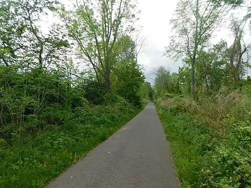 ![]() The Harlem Valley Rail Trail at the approximate site of the Mount Riga station in May 2025. | |||||||||||