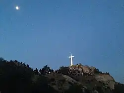 Mount Rubidoux is a mountain just west of downtown in the city of Riverside, California, United States, that has been designated a city park and landmark. The mountain was once a popular Southern California tourist destination and is still the site of the oldest outdoor non-denominational Easter Sunrise service in the United States. Many historic markers and memorials have been placed on the mountain, the most prominent being the cross at the summit dedicated to Father Junípero Serra. A majority of Mt. Rubidoux is owned by the City of Riverside, while 0.43 acres at the peak is owned by Rivers & Lands Conservancy after the cross attracted a potential lawsuit and the city decided to sell it at auction it to a private organization (see Legal battle below).[3]