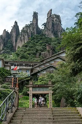 Mount Sanqing is the highest of the Huaiyu Mountains and is known for its outstanding scenery and unique geological formations.[1] The area became a National Geopark in 2005, and a UNESCO World Heritage Site in 2008.[2][3] It is a famous tourist destination as well as a refuge for animals and plants. The national park contains more than 2,300 species of plants and 400 species of vertebrates.[4] The total area of Mount Sanqing is 229 km2.