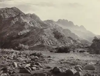 Mount Serbal (Arabic: Jebel Serbal, جبل سربال) is a mountain located in Wadi Feiran in southern Sinai. At 2,070 metres (6,791 ft) high, it is the fifth highest mountain in Egypt. It is part of the St. Catherine National Park. It is thought by some to be the Biblical Mount Sinai. Among others this was claimed by Ludwig Schneller, because it fits best with the biblical tradition taking into account the route and speed of the Israelites and the surroundings of the mountain, as Rephidim is identified with Wadi Feiran.[2]