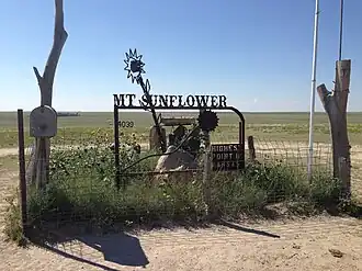 Mount Sunflower, although not a true mountain, is the highest natural point in the U.S. state of Kansas.[1] At 4,039 feet (1,231 m), it is 3,300 feet (1,010 m) above the state's topographic low point, which lies on the opposite side of the state. It is located between the communities of Kanorado and Weskan in Wallace County, less than half a mile (0.8 km) from the state border with Colorado and is near the lowest point in Colorado.