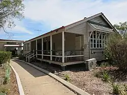 In 1918 a teacher's residence was constructed for £588 and was ready for occupation by February 1919.[29][30] This two bedroom teacher's residence (type C/R2) was one of three standard designs created between 1894 and 1914.[31] From the outset, teacher's residences were built to a standard regulated by the Board of General Education rather than a specific design, so the form varied with each commissioned architect.[32] Initially, residences were most often attached as annexes to the classroom building, but from the 1880s were built as detached residences. These residences were similar to the vernacular Queensland house with few, if any, education-specific requirements or features.[1]