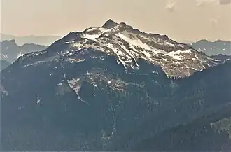 Mount Tommy Thompson is a 6,780-foot-elevation (2,070-meter) mountain summit located in Skagit County of Washington state. It is situated eight miles southeast of the town of Marblemount, within the Glacier Peak Wilderness, on land managed by Mount Baker–Snoqualmie National Forest, on the west slopes of the North Cascades Range. The nearest higher named neighbor is Snowking Mountain, 3.16 miles (5.09 km) to the southeast.[1] Topographic relief is significant as the southwest aspect rises 3,670 feet (1,120 meters) above Slide Lake in less than two miles. Precipitation runoff from Mount Tommy Thompson drains into tributaries of the Skagit River.